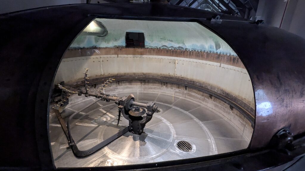 The tour started with a short video from the distillery’s founder, sharing how the distillery came to life and the vision behind it. Then we stepped into the main distillery building, which is bright, clean, and filled with a mix of new and old equipment. Although Falkirk is a new distillery without much of a whisky history, the same can not be said for some of the equipment. The mash tun, for instance, is over 60 years old and was transported in one piece all the way from Speyside with a police escort. After the mash tun arrived on site and was installed, the distillery was built around it. It has a wonderfully weathered look with a copper lid, and inside, instead of using the more common lauter tun system, it relies on a traditional rake-and-plough setup, which is quite rare in Scotland.