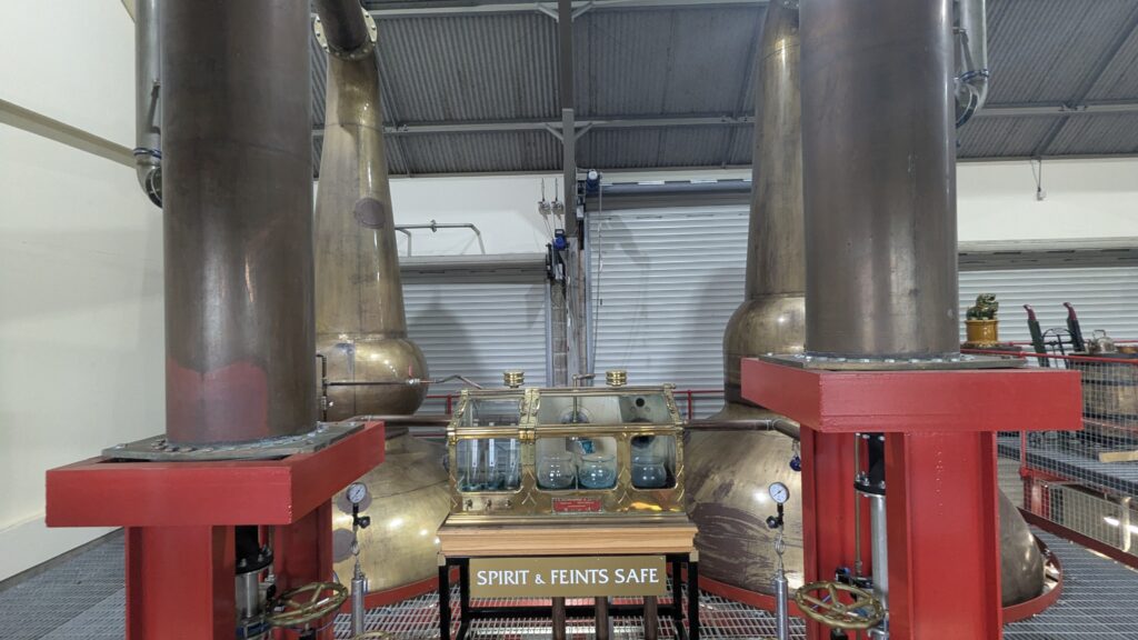 The two stills were also sourced second-hand from Glen Grant distillery in Rothes. They may look a little rustic, but together they produce up to 1.5 million litres of spirit a year. There’s one wash still and one spirit still, and both contrast quite nicely with the modern surroundings.